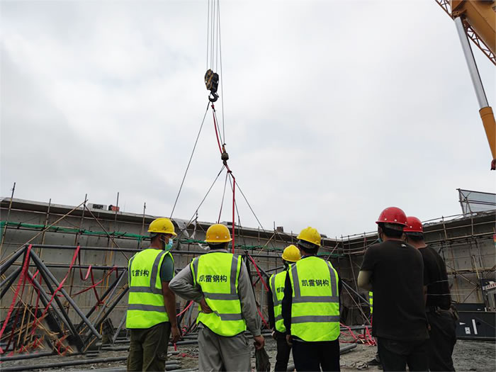 6.为确保.甘南加油站球形网架安装顺利,应有详细的甘南施工组织设计。网架安装必须保证结构的稳定性和不产生的附加变形。
